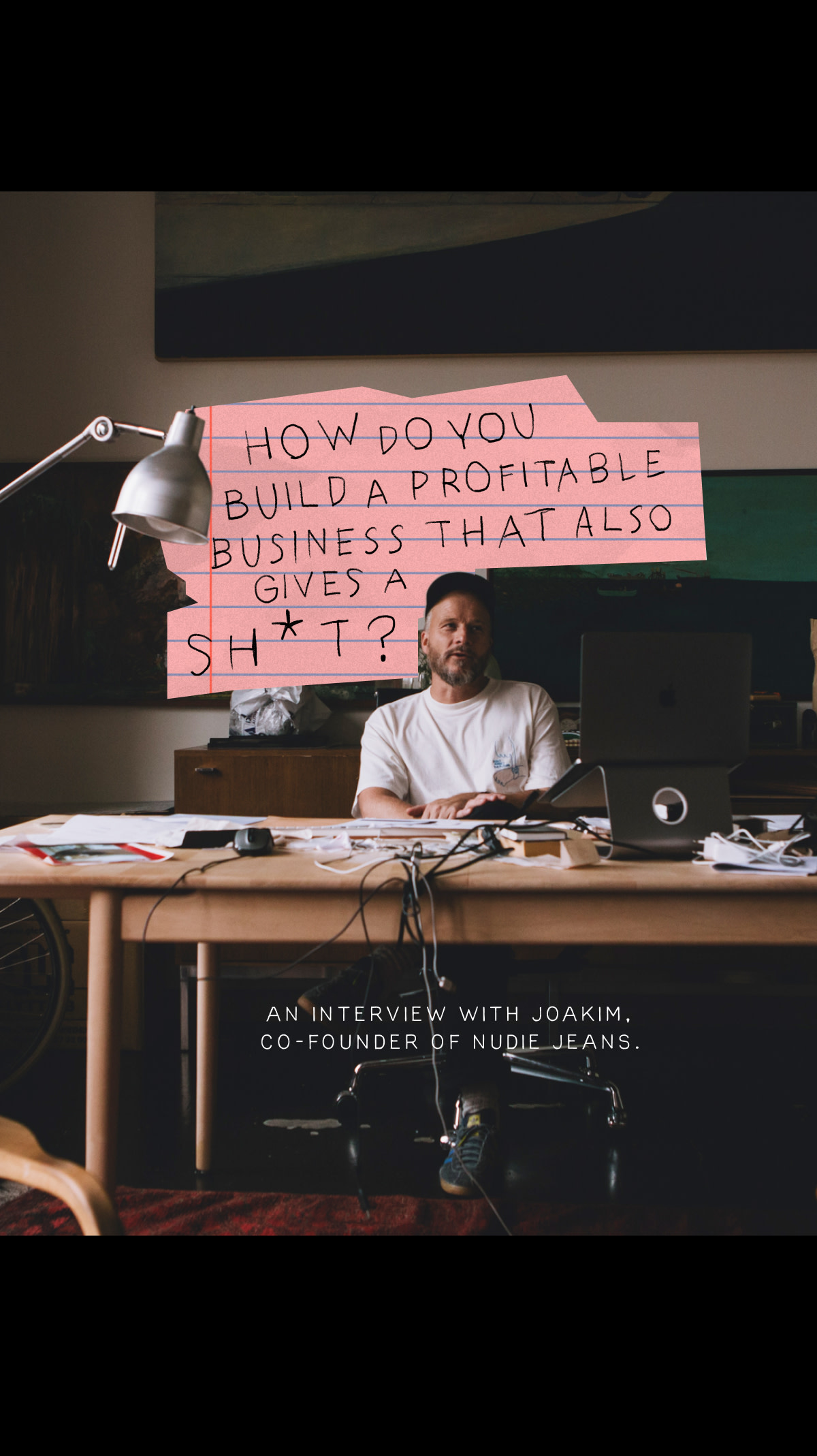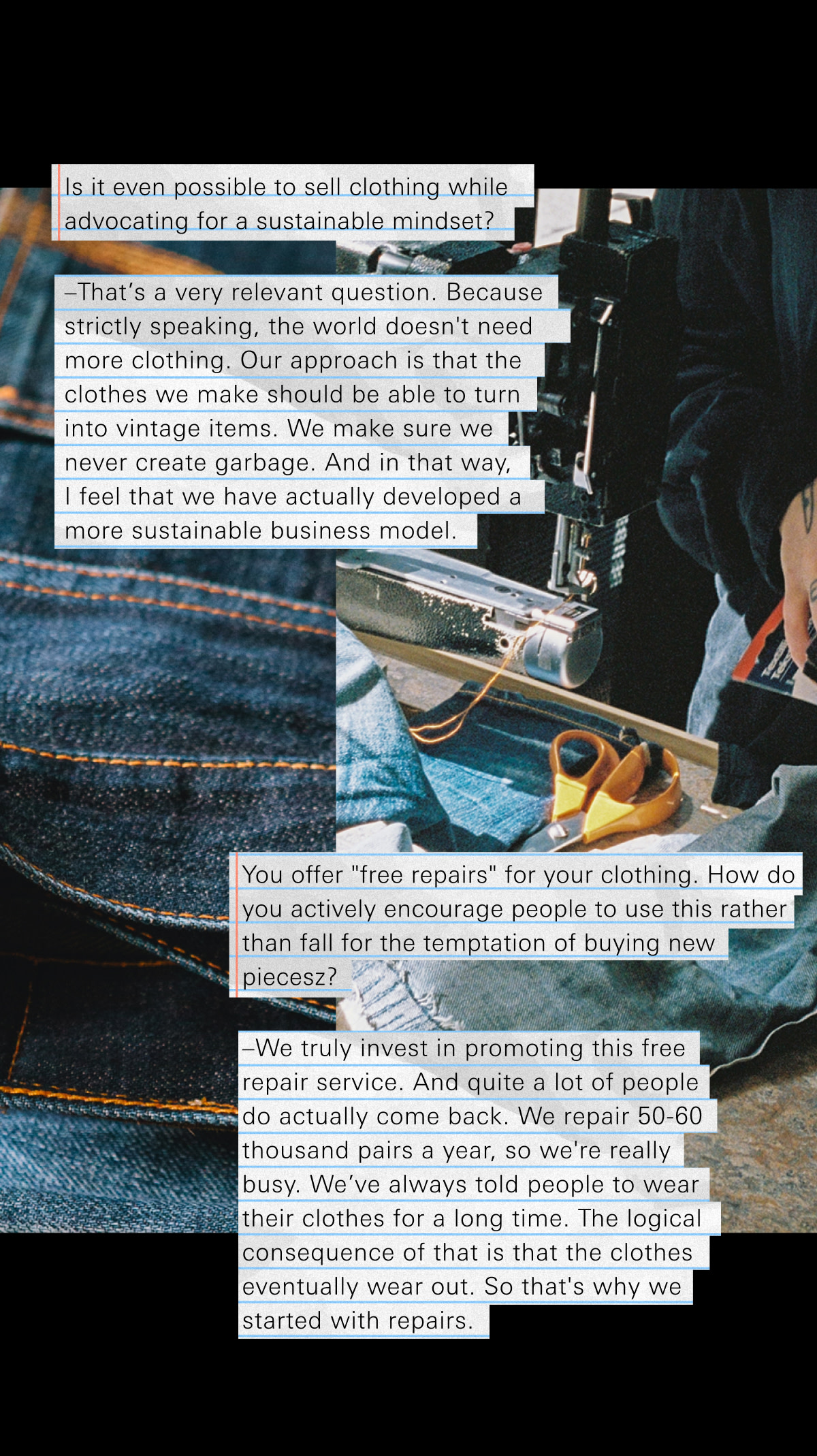 Loud Larry Electric Blues220 USDLoose wide-leg high-waist jeans in 13 oz organic rigid denim, mid-blue wash with contrast wear. Orange seams, copper trims, button fly.