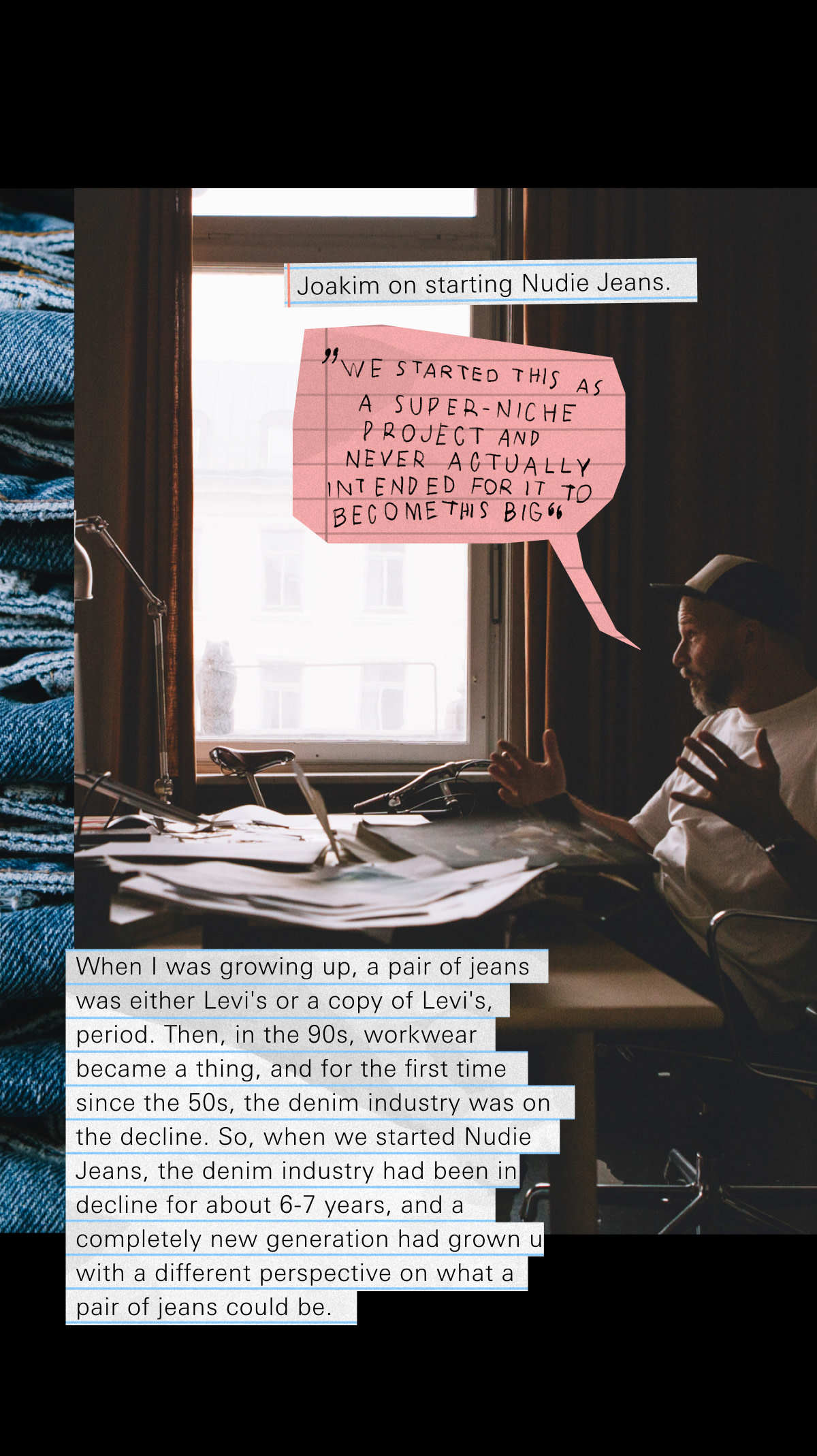 Regular tapered jeans in 14.2 oz rigid regenerative organic cotton denim. Mid-dark blue Sand Storm wash, copper trims, button fly.